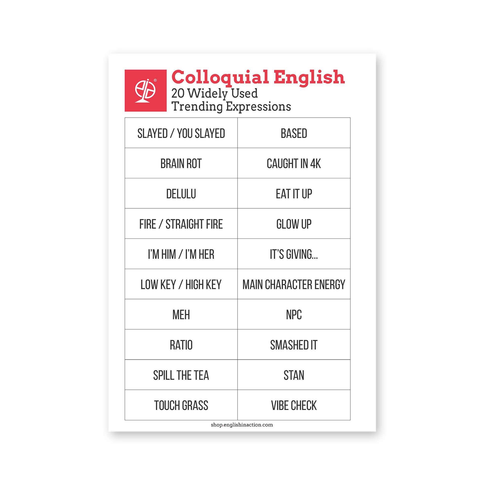 The sets cover common British slang, current youth expressions, and widely used online phrases now appearing in speech. Suggested classroom uses include noticing tasks, ranking activities, dialogue practice, and short role-play work. This resource supports cultural awareness, listening confidence and natural language comprehension.